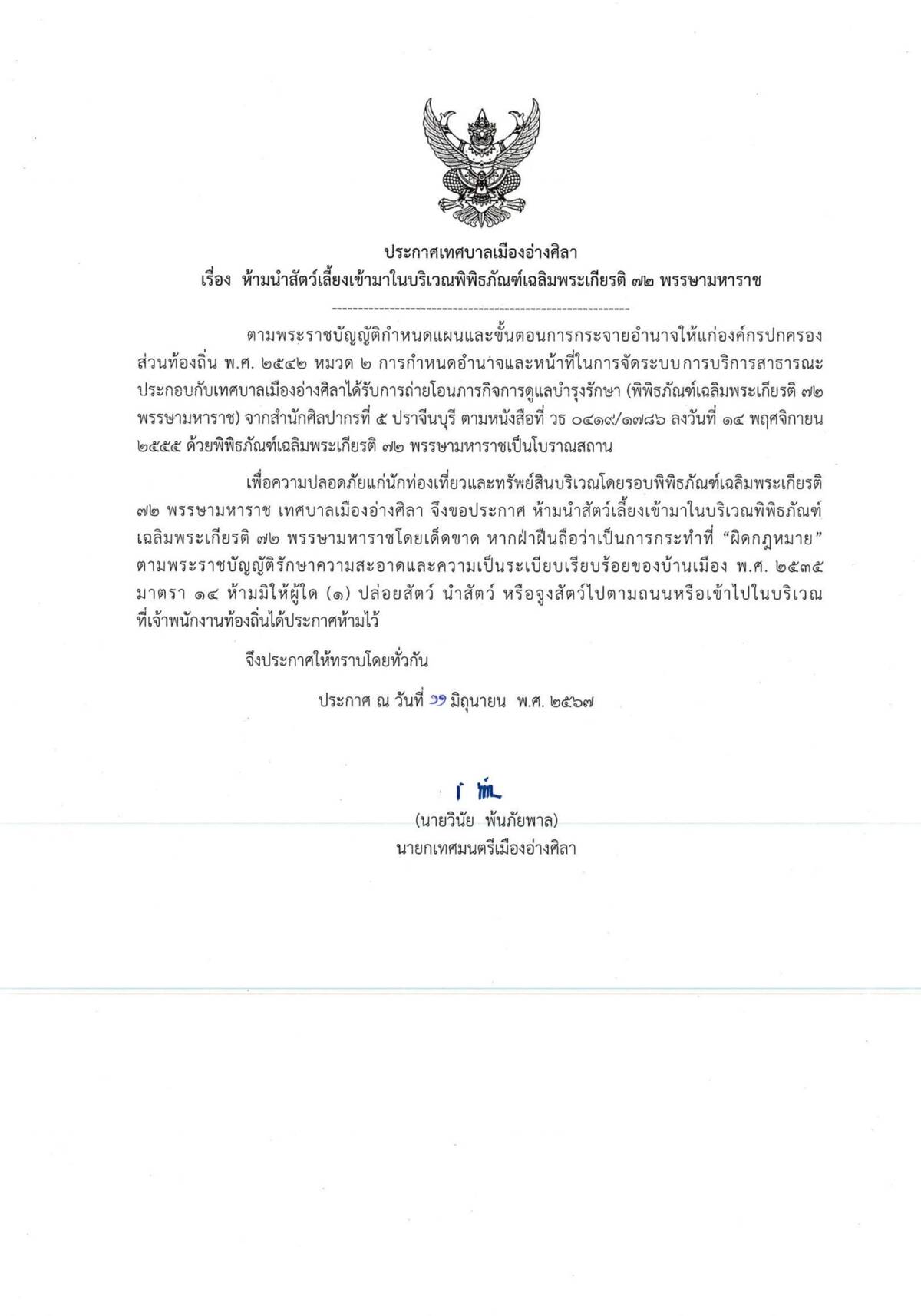 ประกาศ ห้ามนำสัตว์เลี้ยงเข้ามาในบริเวณพิพิธภัณฑ์เฉลิมพระเกียรติ 72 พรรษามหาราช มิถุนายน 19, 2024มิถุนายน 20, 2024 vichakarn กิจกรรมอ่างศิลา, ข่าวสารน่ารู้ ประกาศเทศบาลเมืองอ่างศิลา เรื่อง ห้ามนำสัตว์เลี้ยงเข้ามาในบริเวณพิพิธภัณฑ์เฉลิมพระเกียรติ 72 พรรษามหาราชหากฝ่าฝืนถือเป็นการกระทำที่ผิดกฎหมาย พบเห็นผู้กระทำผิดแจ้งเทศบาลเมืองอ่างศิลา งานเทศกิจ 0 3814 2100 ต่อ 220 งานนิติการ 0 3814 2100 ต่อ 218 ประกาศ ห้ามนำสัตว์เลี้ยงเข้ามาในบริเวณพิพิธภัณฑ์ดาวน์โหลด