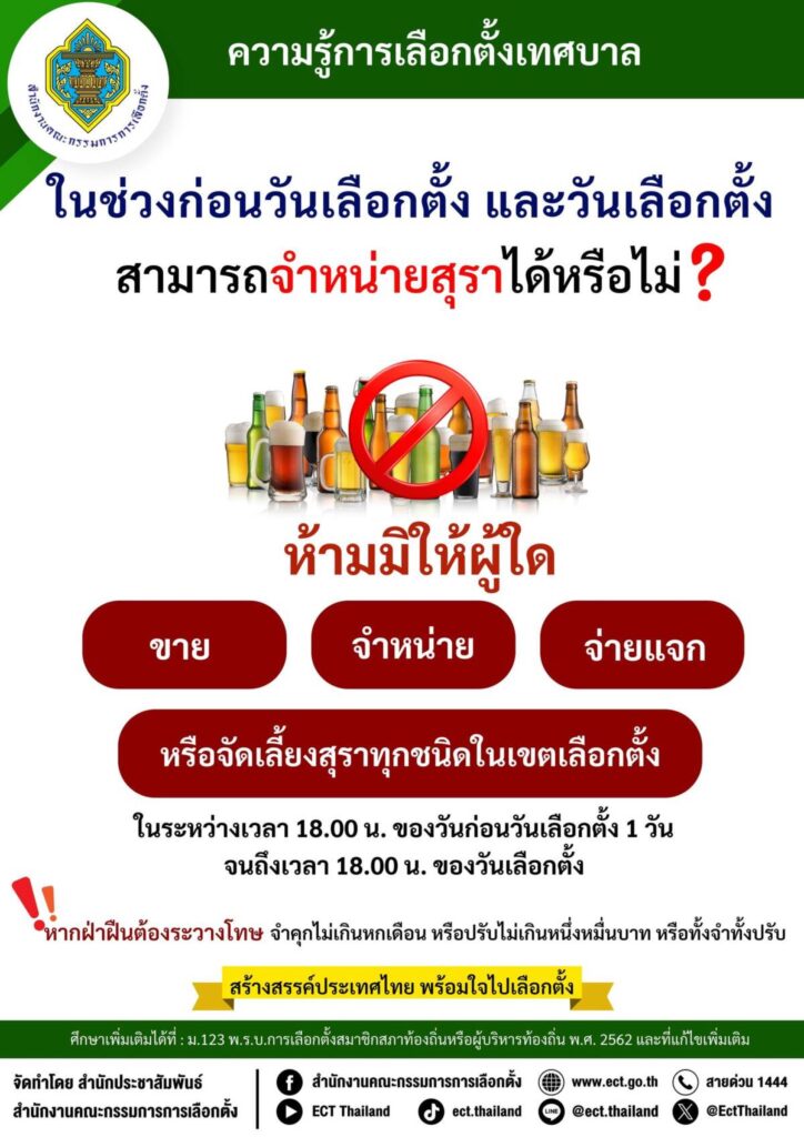 #กฎหมายเลือกตั้ง ห้ามขาย ห้ามจำหน่าย ห้ามจ่ายแจก หรือจัดเลี้ยงสุราทุกชนิดในเขตเลือกตั้ง (ในพื้นที่เทศบาลเมืองอ่างศิลา แบ่งเป็น 3 เขตเลือกตั้ง)