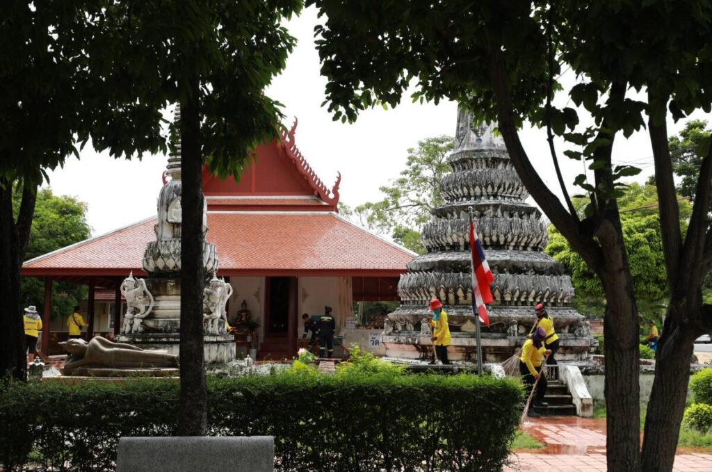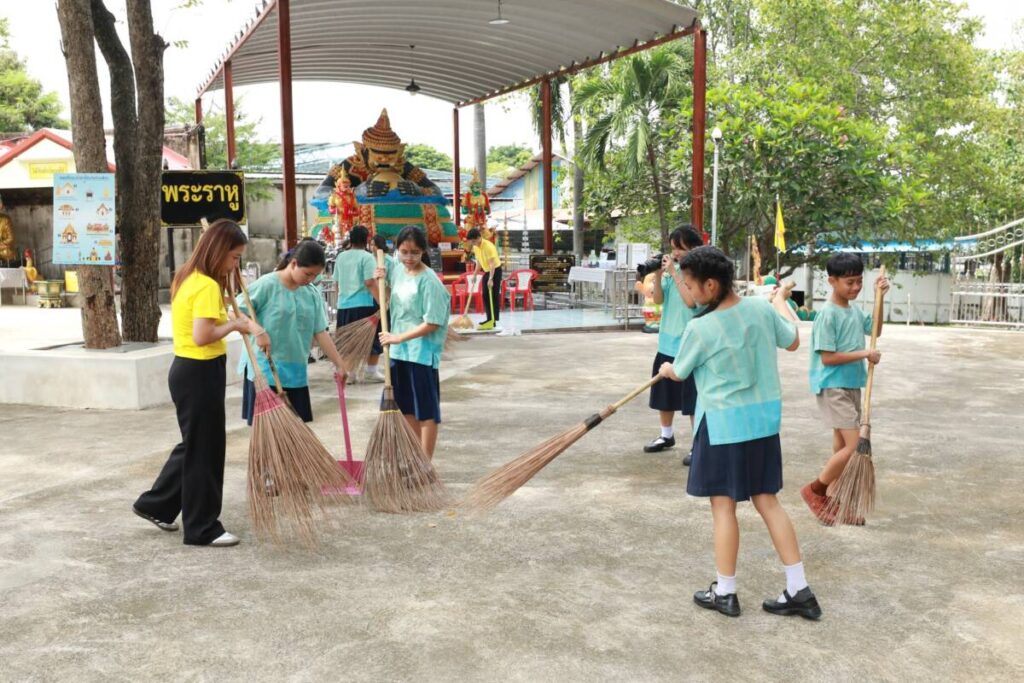 วันที่ 5 กันยายน 2568 ที่วัดอ่างศิลา ต.อ่างศิลา อ.เมืองชลบุรี นายสุทธิ กลมกล่อม รองนายกเทศมนตรีเมืองอ่างศิลา พร้อมด้วยบุคลากรเทศบาล กำนัน ผู้ใหญ่บ้าน คณะกรรมการชุมชน องค์กรเครือข่ายในชุมชน และนักเรียน ร่วมลงพื้นที่ทำกิจกรรมจิตอาสา ตามโครงการ “วัด ประชา รัฐ สร้างสุข” ปีงบประมาณ พ.ศ. 2568 เพื่อให้เกิดการพัฒนาที่ยั่งยืนตามแนวทางของมหาเถรสมาคม เกิดผลอย่างเป็นรูปธรรม ภายใต้การบูรณาการความร่วมมือกับทุกภาคส่วน โดยช่วยกันทำความสะอาดบริเวณลานวัด ศาลาทำบุญ พระอุโบสถทั้ง 2 ฝั่ง ซึ่งรวมถึงโบสถ์มหาอุตม์สมัยอยุธยา ทำความสะอาดห้องน้ำ ทำความสะอาดเมรุ และตัดแต่งต้นไม้ ช่วยกันทำให้ศาสนสถานมีความสะอาด ร่มรื่น เป็นศูนย์กลางในการเผยแผ่พุทธศาสนาและแหล่งเรียนรู้ของคนในชุมชน นำไปสู่การสร้างเสริมสุขภาวะทั้งทางด้านกายภาพ จิตใจ สังคม และปัญญา เกิดความสามัคคี ความเสียสละต่อประโยชน์ส่วนรวม