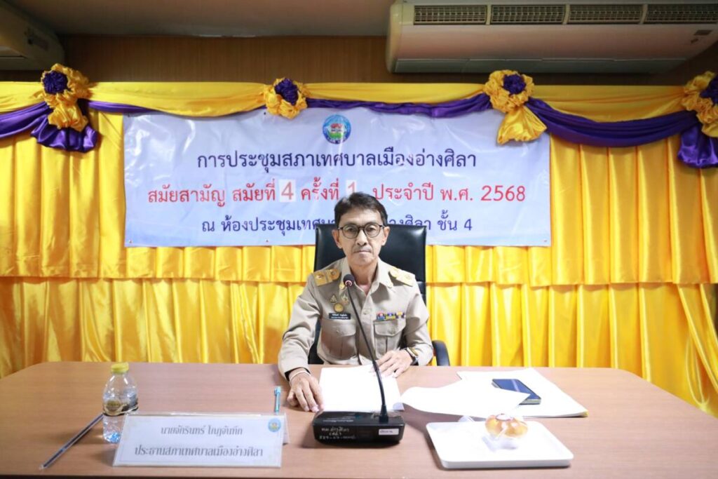 วันที่ 10 กันยายน 2568 นายจักรินทร์ โกฎจันทึก ประธานสภาเทศบาลเมืองอ่างศิลา เป็นประธานการประชุมสภาเทศบาลเมืองอ่างศิลา สมัยประชุมสามัญ สมัยที่ 4 ครั้งที่ 1 ประจำปี พ.ศ. 2568 ณ ห้องประชุมเทศบาลเมืองอ่างศิลา ชั้น 4 โดยมีนายวินัย พ้นภัยพาล นายกเทศมนตรีเมืองอ่างศิลา พร้อมด้วยคณะผู้บริหาร สมาชิกสภาเทศบาล และหัวหน้าส่วนราชการเข้าร่วมประชุมพิจารณาการบริหารราชการและงบประมาณด้านต่างๆ สำหรับวาระการประชุมที่น่าสนใจ มีดังนี้