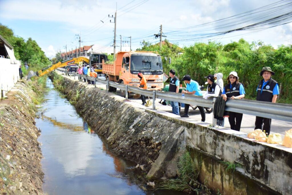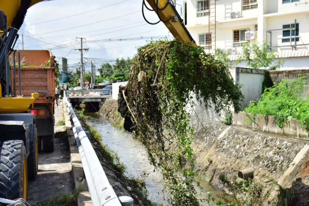วันที่ 11 กันยายน 2568 นายวินัย พ้นภัยพาล นายกเทศมนตรีเมืองอ่างศิลา พร้อมด้วยคณะผู้บริหาร สมาชิกสภาเทศบาล เจ้าหน้าที่กองช่าง กองสาธารณสุขและสิ่งแวดล้อม นำอุปกรณ์และเครื่องจักร เข้าดำเนินการลอกคลองระบายน้ำคลองขโมย บริเวณซอยหมู่บ้านเทพธานี ต.เสม็ด อ.เมืองชลบุรี โดยดำเนินการกำจัดวัชพืชและสิ่งกีดขวางทางน้ำ รวมถึงขุดลอกดินโคลนที่ทำให้คลองตื้นเขิน เพื่อเพิ่มประสิทธิภาพการระบายน้ำให้ดียิ่งขึ้น เนื่องจากในช่วงฤดูฝนปีนี้มีฝนตกหนักต่อเนื่อง ซึ่งเป็นส่วนหนึ่งของมาตรการป้องกันและแก้ไขปัญหาน้ำท่วมและเพิ่มประสิทธิภาพการระบายน้ำที่ดำเนินการมาอย่างต่อเนื่อง โดยเทศบาลเมืองอ่างศิลาได้ดำเนินการเพิ่มประสิทธิภาพการระบายน้ำทั้งระบบ เช่น การก่อสร้างขยายระบบท่อระบายน้ำ การขุดลองคลอง และการแก้ปัญหาท่อระบายน้ำอุดตันตลอดทั้งปี