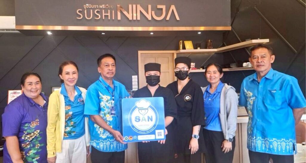 ในโอกาสนี้ นายสมาน นภาโชติ รองนายกเทศมนตรีเมืองอ่างศิลา พร้อมด้วยนายมณเฑียร กาญจนเจริญ เลขานุการนายกเทศมนตรี ได้ร่วมมอบป้ายรับรองมาตรฐานสุขาภิบาลอาหาร (Sanitation Anamai Nutrition : SAN) ให้กับสถานประกอบกิจการด้านอาหาร ได้แก่ ตลาดประเภทที่ 1 ตลาดประเภทที่ 2 สถานที่จำหน่ายอาหาร และสถานที่สะสมอาหาร ซึ่งในปีงบประมาณ 2568 ดำเนินการตรวจสอบทั้งสิ้น 120 แห่ง เพื่อป้องกันไม่ให้ประชาชน นักท่องเที่ยว เกิดการเจ็บป่วยจากโรคภัยที่มาจากการเตรียม ประกอบ ปรุง และการจำหน่ายอาหาร ส่งเสริมให้มีบริการที่เป็นมิตรกับสิ่งแวดล้อม อีกทั้งเป็นการยกระดับมาตรฐานการสุขาภิบาลอาหาร ให้สถานประกอบการให้ดียิ่งขึ้น