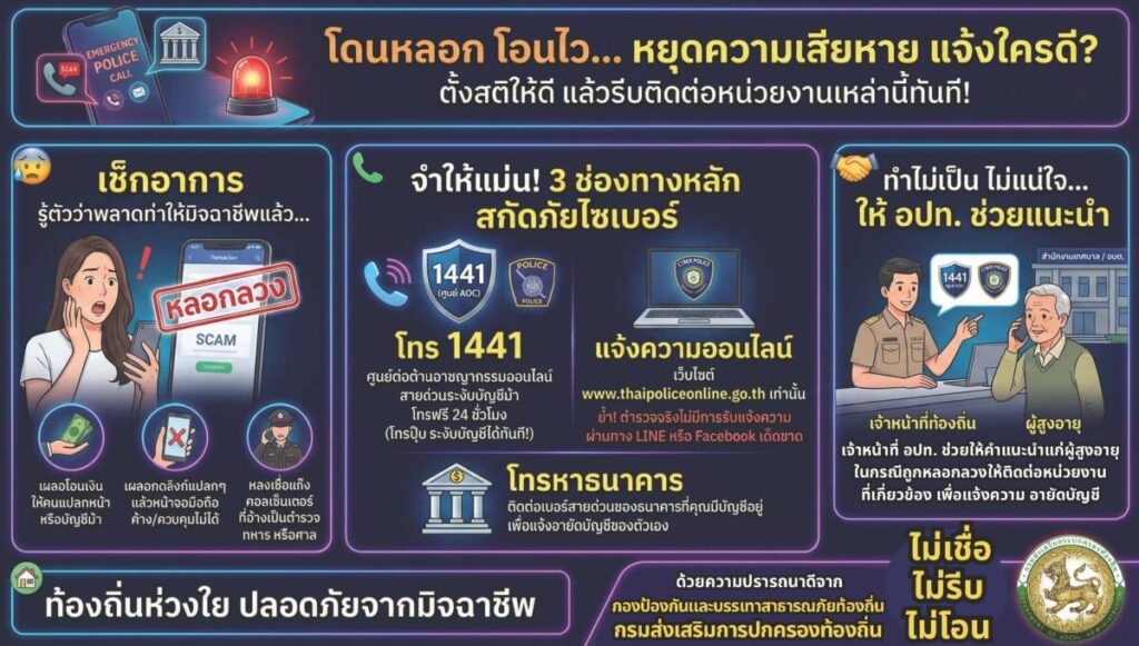 โดนหลอก โอนไว…หยุดความเสียหาย แจ้งใครดี ?